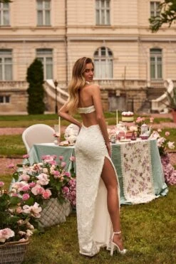 Fall in love with the gorgeous Dinara Set. This pink two-piece is perfect for any dressy day event and features a strapless cropped bustier, combined with a flowing triple seam a-line maxi skirt.