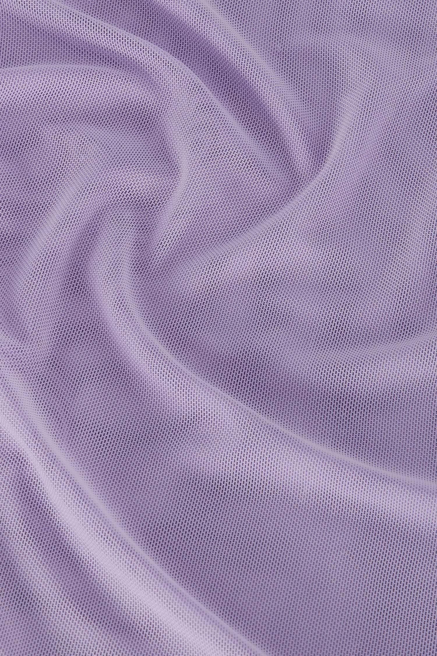 Elevate your wardrobe with the Jessica Dress. This alluring piece features long sleeves with feather cuffs, a daring plunge neckline embellished with our signature Alamour emblem. Designed with a flattering fitted midi silhouette and crafted from a delightful lilac mesh fabric. The Jessica Dress uses feathers and bold colours to elevate simple silhouettes.