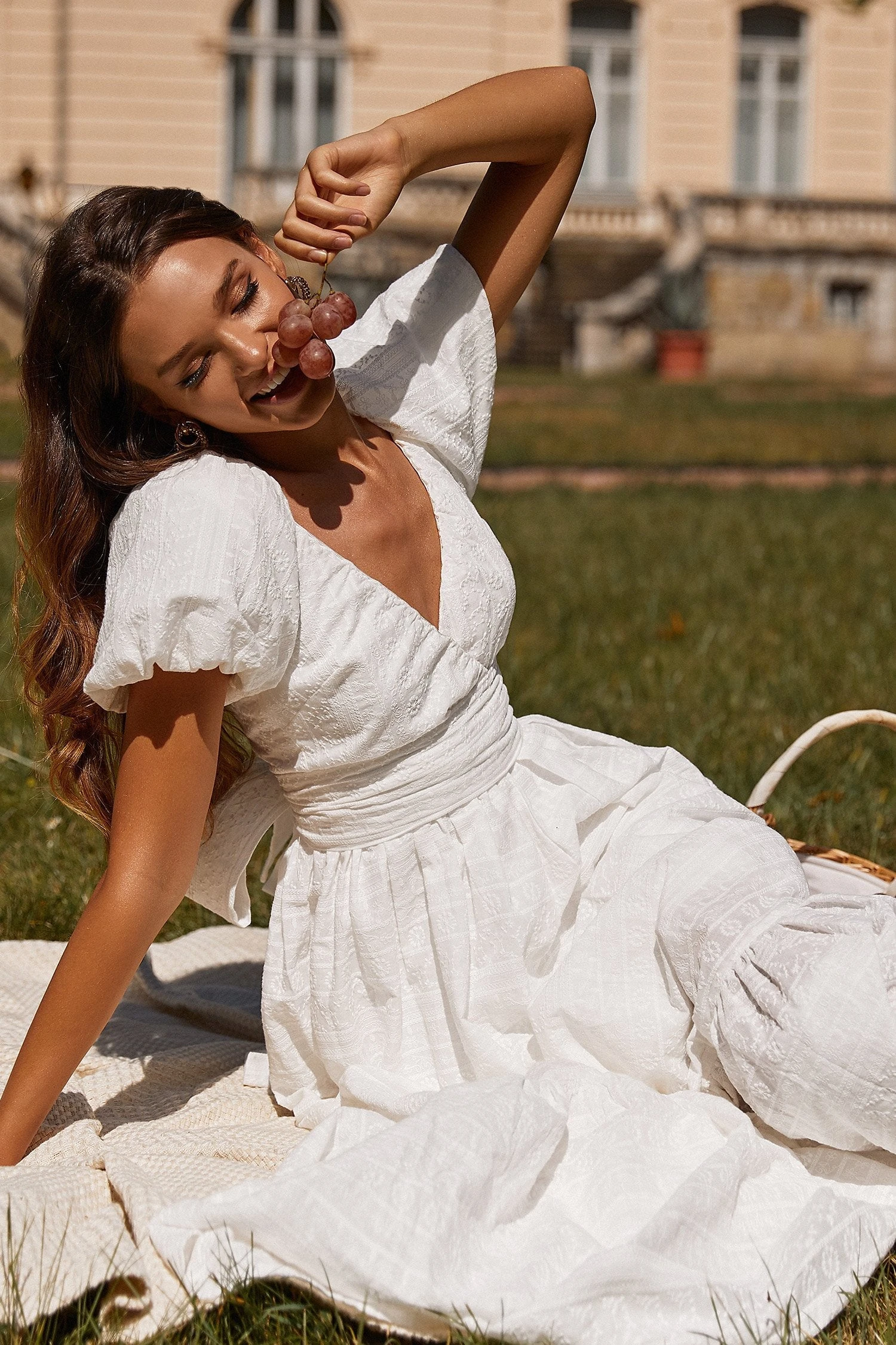 SKU: YWXHB 4756479508564 Category: DRESSES Tags: A-line, Color_White, Maxi Dress, V-Neck