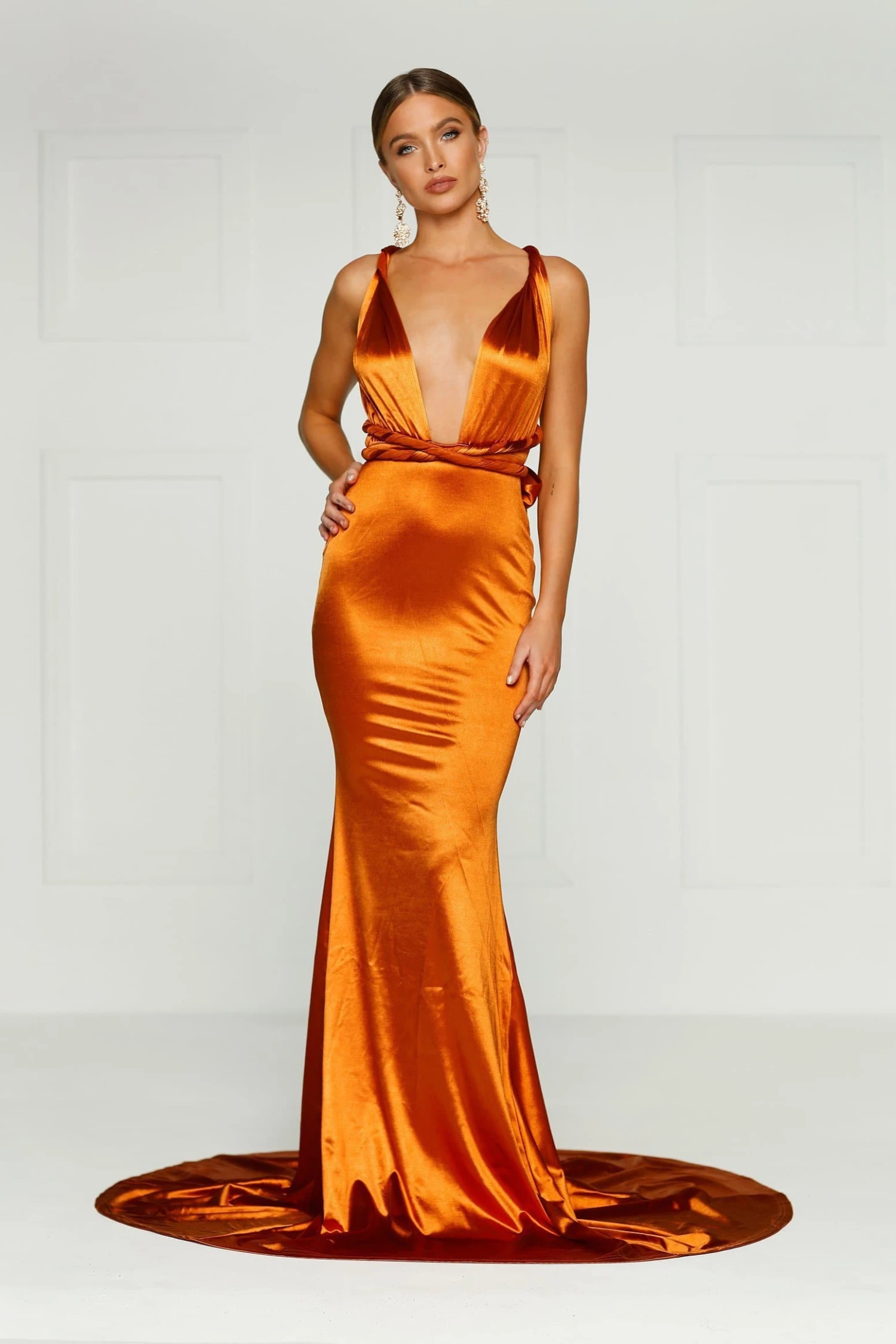 Our Lena Gown is made of thick satin fabric which hugs all your curves with the perfect mermaid train. Lena can be worn multiple ways – creating a new style every time. You can never go wrong with a multiway dress!