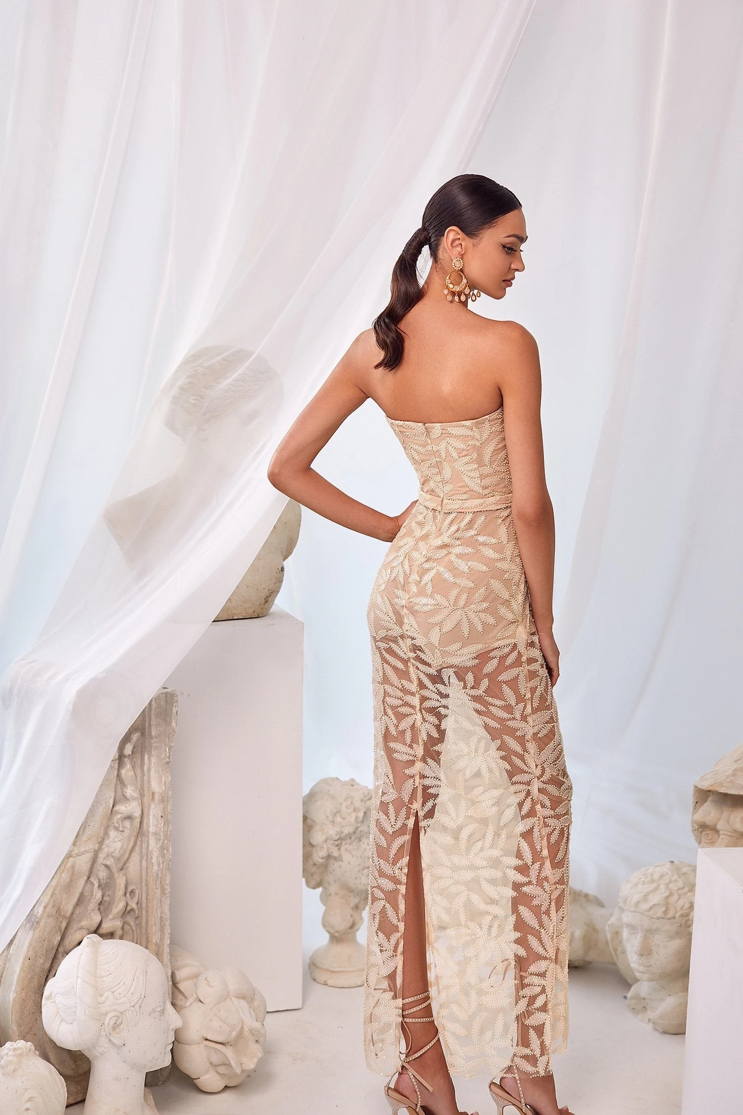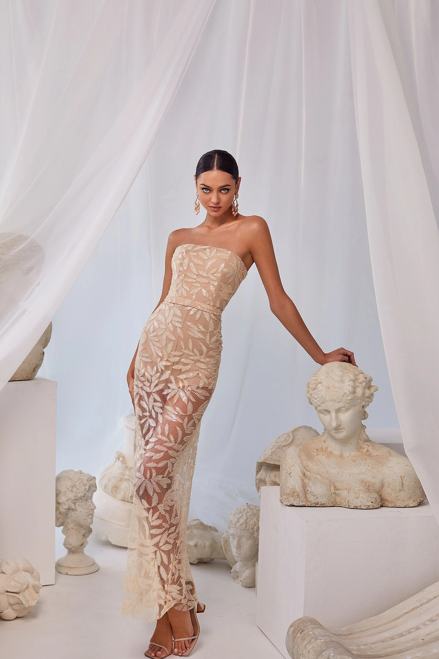 The Mia Dress brings an essence of femininity to your formal wear. This chic design was crafted with a classic strapless neckline, intricate detailing in the beaded sequin fabric, and a straight-fitted silhouette. Romantic and alluring, the Mia Dress will leave a lasting impression.Â