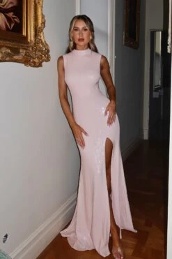 Stretchy fabric. Delicate fabric. Arms are sheer. Lined with peach fabric. Zip back.