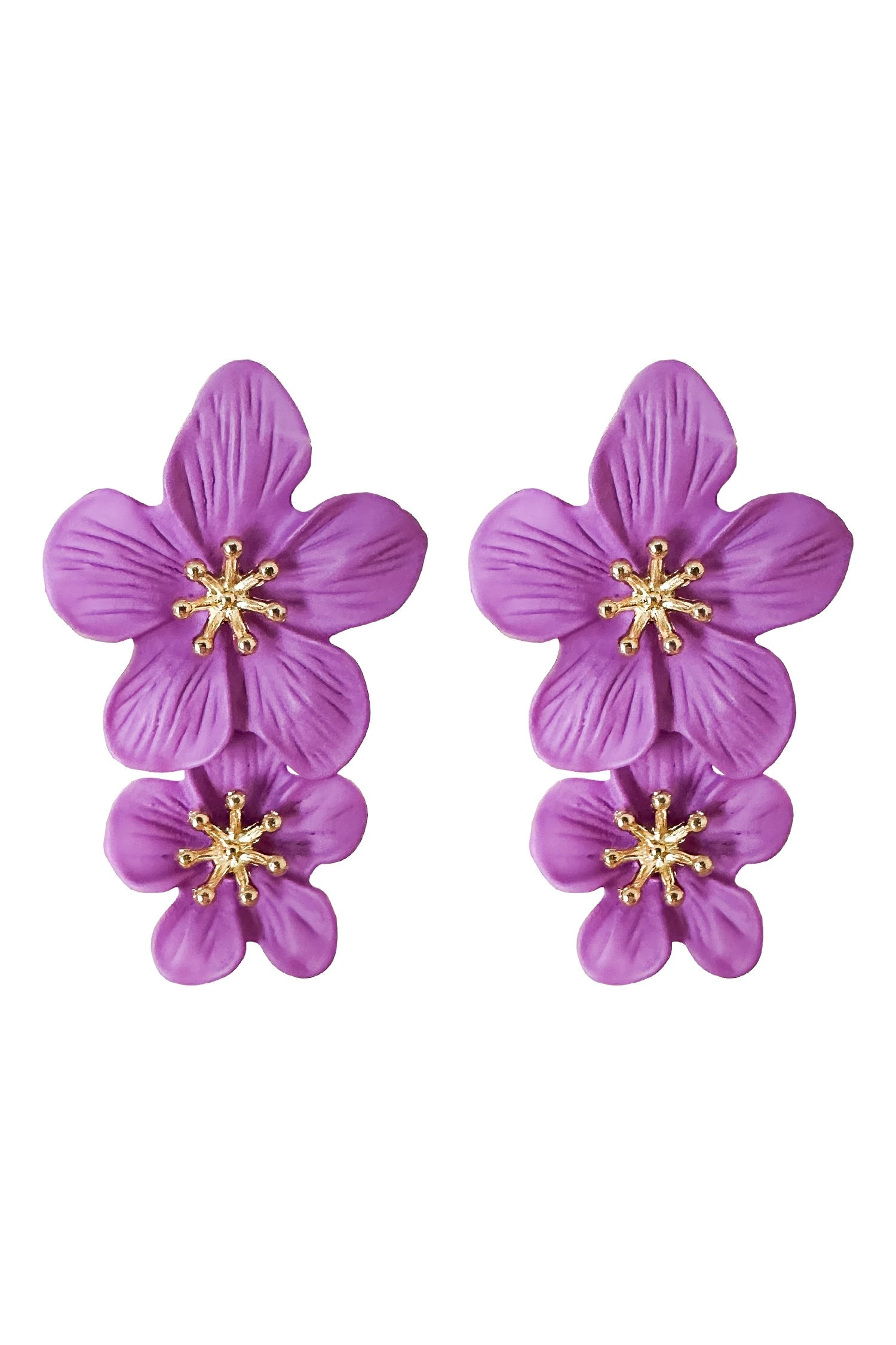 The Shyla Purple Multi Flower Earrings are the perfect accessory to accentuate your look. This double flower design with gold centers is a must-have.